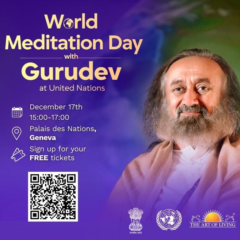 Rejoignez The Art of Living aux Nations Unies à Genève pour la toute première célébration européenne emblématique de la Journée Mondiale de la Méditation. Depuis plus de 40 ans, Gurudev, pionnier de la méditation et du souffle, apporte paix et joie à des millions de personnes dans plus de 180 pays.