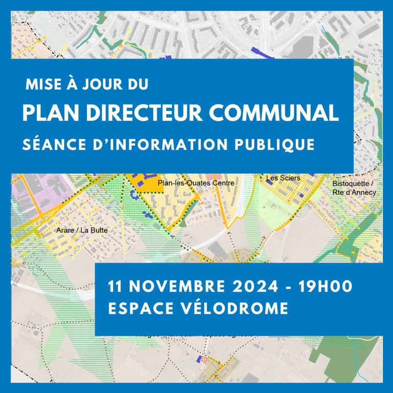 Les autorités de Plan-les-Ouates vous invitent à découvrir le PDCom lors d'une séance d'information publique.