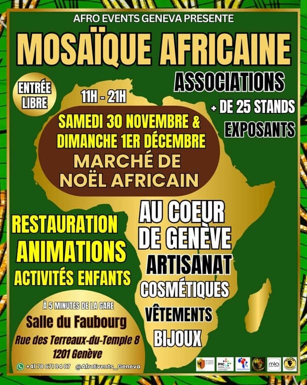 Nous sommes ravis de vous annoncer l’événement ✨Mosaïque Africaine✨, qui réunira des associations africaines et des exposants pour la partie marché de Noël, des traiteurs pour vous faire découvrir les merveilleux mets de différents pays d’Afrique, ainsi que diverses animations.