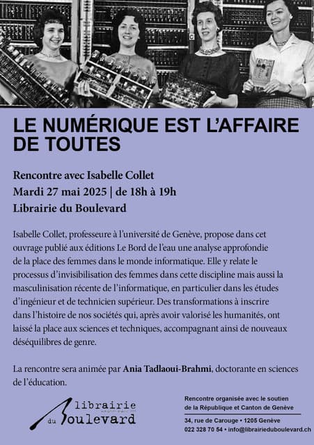 Isabelle Collet, professeure à l’Université de Genève, propose dans cet ouvrage publié aux éditions Le Bord de l’eau une analyse approfondie de la place des femmes dans le monde informatique.