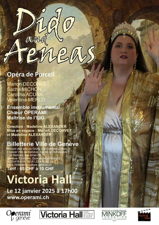 L’amour et l’adieu de deux amants mythiques, d’après l’Énéide de Virgile: fuyant Troie, Énée aborde à Carthage et tombe amoureux de la reine Didon. Mais sorcières et esprits mettent fin à l’idylle, poussant Énée à reprendre la mer pour aller fonder Rome. Abandonnée, Didon meurt de chagrin dans une plainte inoubliable.