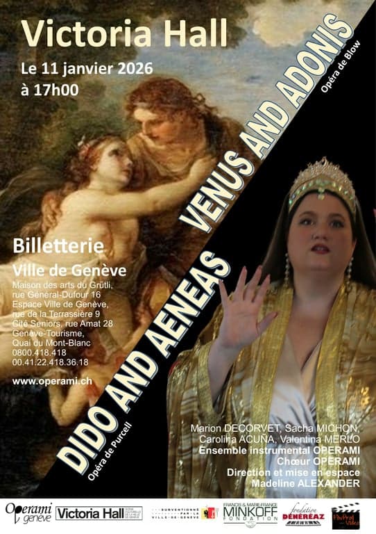 Le 11 janvier 2026 à 17h, OPERAMI interprétera deux opéras baroques anglais dans la même soirée, au Victoria Hall. Didon et Énée de Purcell est l’opéra baroque le plus célèbre mais peu connaissent l’œuvre dont l’opéra s’inspire. Vénus et Adonis fut composé par John Blow en 1681 pour le roi d’Angleterre et est un véritable bijou injustement éclipsé.