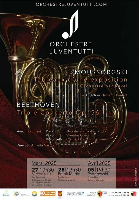 L’Orchestre Juventutti, sous les baguettes de son cofondateur Amanta Nasution et d’un nouveau venu, Clément Dromart, a le plaisir de revenir sur la scène du Victoria Hall le 27 mars 2025 avec un programme grandiose, puissant et coloré par les Tableaux d’une exposition du compositeur russe Modeste Moussorgski.