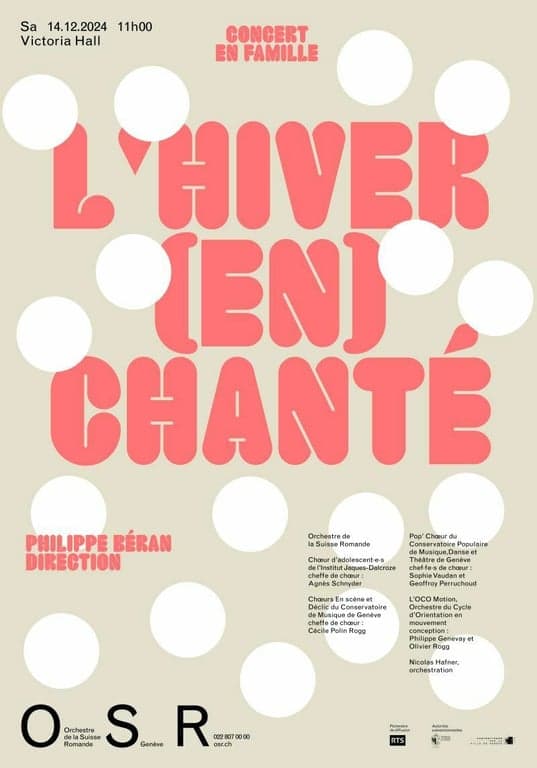 Rangez chaussons, infusions, et autres lumignons, l’OSR reçoit le temps d’un concert une centaine d’enfants et d’ados pour un programme chantant et enchanté. Ambiance chaleureuse garantie autour de chants en tous genres, du plus pop au plus traditionnel, afin de préparer avec enthousiasme l’arrivée de Noël.