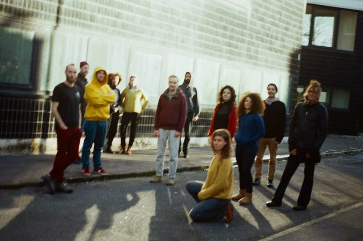 Ainsi Liz Moscarola, violoniste, diseuse et chanteuse, tour à tour funambule, trépignante, amicale, excédée, Gilles Poizat, cracheur de bugles et aboyeur lunaire, Vincent Bertholet, proue du navire, contrebassiste et compositeur principal hypnotisé par sa propre litanie toute d’élégance et de lassitude ahurie. François Atlas qui passe la tête en voisin chaleureux, le temps d’un Tout Haut bizarrement radieux et soufflant en langue sonnante d’excentriques bulles de savon radiocactif. Ainsi aussi Aïda Diop, joueuse de marimba, qui fiche ici quelques étincelantes épingles vocales avec la précision d’une lanceuse de couteaux. Ainsi, enfin, Mara Krastina en vacances du trio heurté dit Massicot qui ferme le ban en son letton natal et annonce la suite puisque, nous dit-on, elle fait désormais officiellement partie du groupe. Tout ça sous des averses de chœurs drus, parmi les assauts de cuivres rebondissant et les riffs anguleux de guitare électrique, les éboulis de marimba qui agrandissent l’ensemble comme la pluie agrandit la rue par résonnances et effets-miroir.