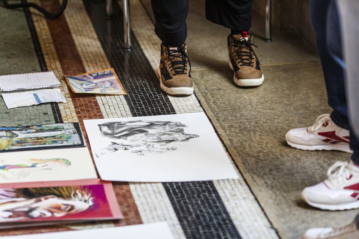 Chaque premier dimanche du mois, deux artistes genevois, Serval (graffiti artist) et Kalonji (illustrateur) vous accueillent pour un moment d'échange et de création face aux œuvres.