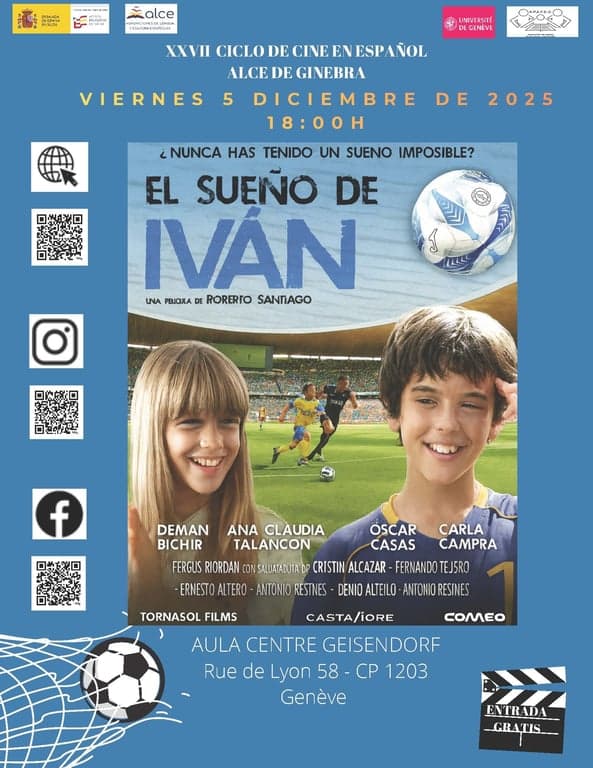 La Agrupación de Lengua y Cultura Españolas de Genève invite la communauté hispanophone, et tout particulièrement les enfants de 5 à 13 ans, à découvrir El sueño de Iván (2011), un film de Roberto Santiago.