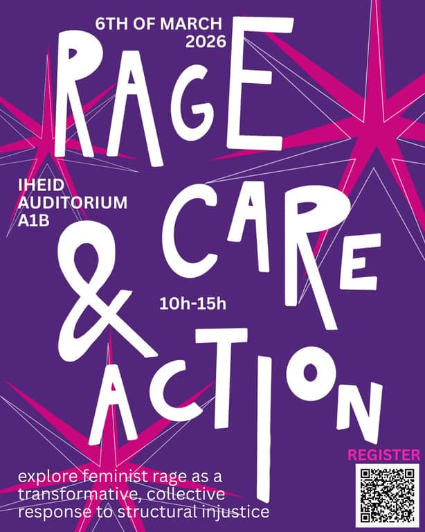 À l’issue du panel, les participant·e·s sont invité·e·s à un déjeuner au Pétale 2 (Graduate Institute), organisé par des initiatives étudiantes. Une sélection d’ouvrages féministes sera également proposée à la vente avec une remise spéciale de 10 %.