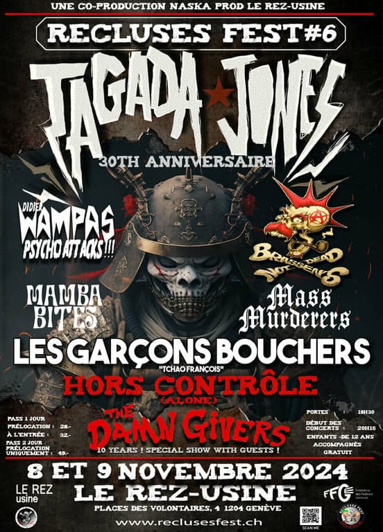Déjà plus de 20 ans que Tagada Jones parcoure les scènes nationales et internationales avec son Punk-Hardcore. Le groupe a traversé 25 pays, produit 9 albums studio et brûlé les planches à plus de 1800 reprises ! Sans doute l’un des seuls combos Punk français à autant s’exporter en chantant dans sa langue natale. Tagada c’est aussi une conscience sociale, un engagement politique et surtout une référence en termes d’indépendance. Dignes héritiers de la scène alternative française, ils sont reconnus par leurs prédécesseurs (Bérurier Noir, Parabellum, Shériff…) comme étant l’incarnation du « Do it yourself » français.