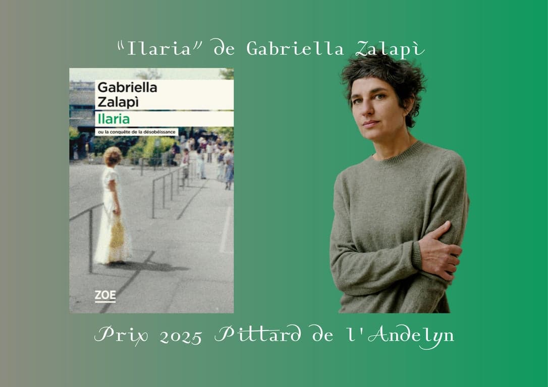 La Fondation Pittard de l’Andelyn attribue son prix de création littéraire 2025 à l’ouvrage Ilaria ou la conquête de la désobéissance de Gabriella Zalapì, publié à Genève aux éditions Zoé. Les membres du jury observaient depuis quelques années la production si personnelle de cette écrivaine ; ils ont été convaincus que ce troisième ouvrage, ce retour vers l’enfance mais aussi vers la patrie, vécu comme un exil à rebours, méritait d’être couronné par une distinction suisse.