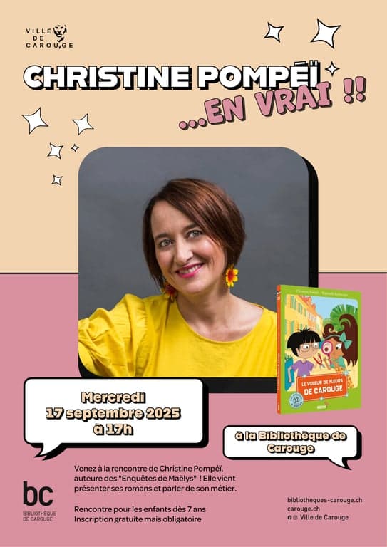 Dès 7 ans, inscription gratuite mais obligatoire : https://www.bibliotheques-carouge.ch/Default/doc/CALENDAR/433/christine-pompei-en-vrai
