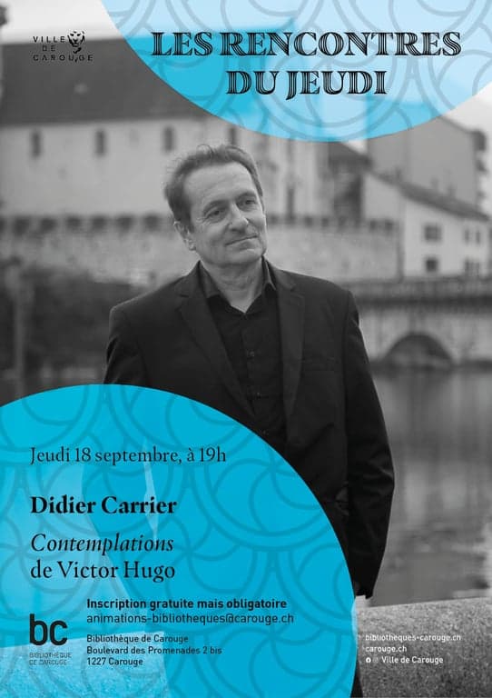 Didier Carrier nous convie à un récital poétique, théâtral et musical autour d'une quinzaine de poèmes tirés du célèbre recueil "Contemplations", sur le deuil et la résurrection, le bonheur d'une nature, proche de l'homme et qui guérit, la révolte du poète contre les injustices.