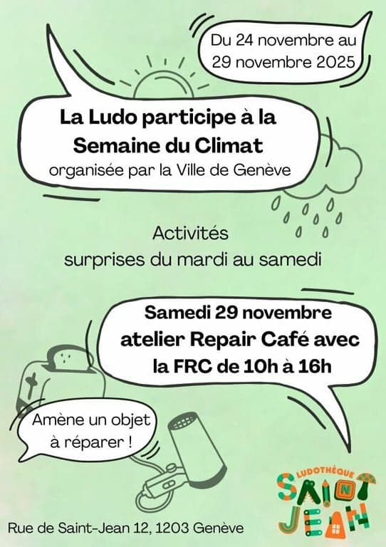 REPAIR CAFÉ avec la FRC à la ludothèque de Saint-Jean! | Calendrier genevois