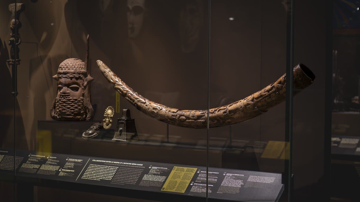 Dans le cadre de l’Initiative Bénin Suisse (2021-2024), huit musées suisses ont étudié l’origine de leurs collections provenant du royaume de Bénin en étroite collaboration avec leurs partenaires du Nigéria. Cette recherche conjointe a révélé que certains artéfacts ont été acquis par les musées à la suite du pillage et du commerce international d’œuvres d’art qui ont suivi l’attaque britannique contre le royaume de Bénin en 1897.