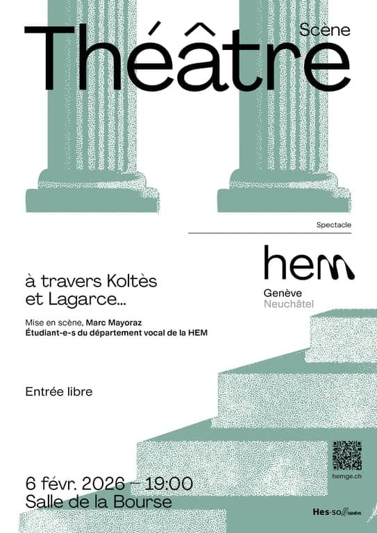 En partant de deux textes, les étudiant-e-s de la HEM découvrent le métier d’acteur/actrice. La diversité du jeu théâtral est abordée par le travail sur l’espace, la communication, le rythme de la scène, la dissociation et la connaissance approfondie de l’histoire de la pièce et des personnages.