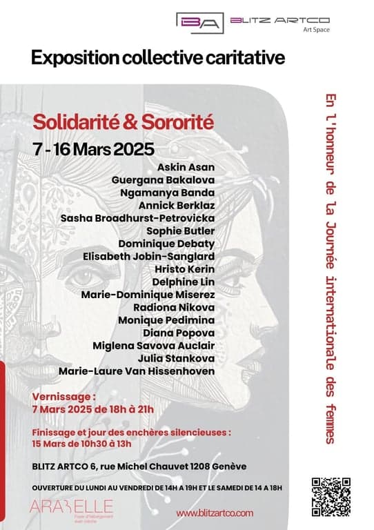 Les bénéfices de la vente aux enchères silencieuse contribueront à soutenir l’association Arabelle, un foyer et une crèche qui œuvrent à l’autonomisation des femmes et leurs enfants exposés à la violence domestique à Genève (www.foyerarabelle.ch En participant à l’exposition, les visiteurs et les artistes contribueront à sensibiliser le public à l’importance de la sororité, du changement social et du soutien mutuel.