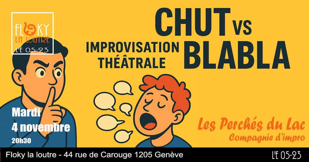 La troupe d'improvisation des Perchés du Lac présente son spectacle « Chut vs Blabla» mardi 4 novembre à 20h30 au Floky La Loutre.