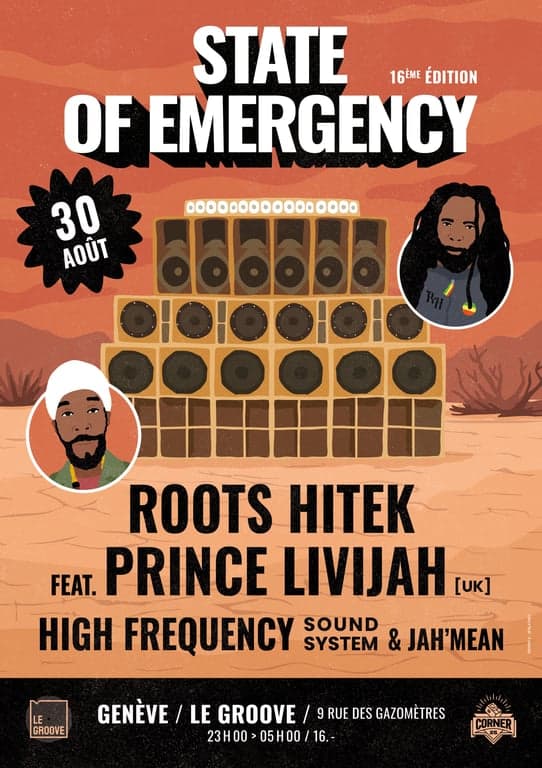 La soirée sera sonorisée comme à son habitude par le full High Frequency Sound System qui sera également accompagné des locaux qu’on ne présente plus, Jah’mean ! Alors réserve cette date dans ton agenda, mets toi en condition et viens voir comment ça se passe au State of Emergency!! ❤️🔥🔥