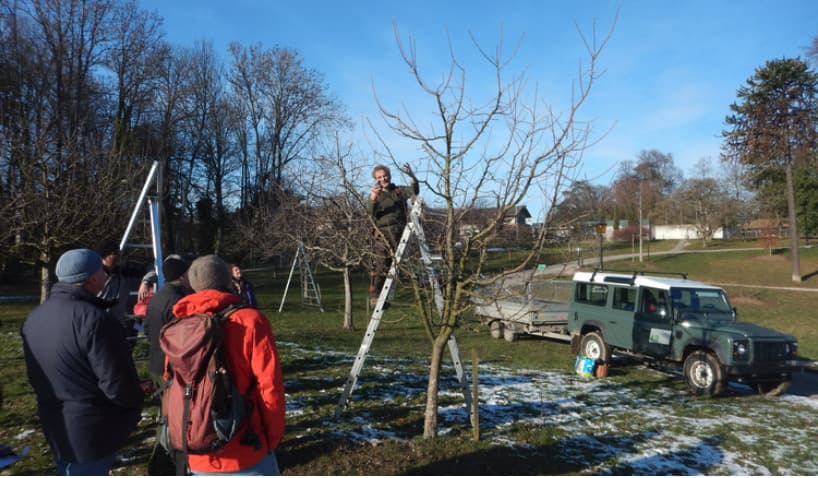Pour faire des tailles de formation, mais aussi des tailles de fructification, du point de vue théorique, tout en montant sur l’échelle et mettant la main au sécateur.