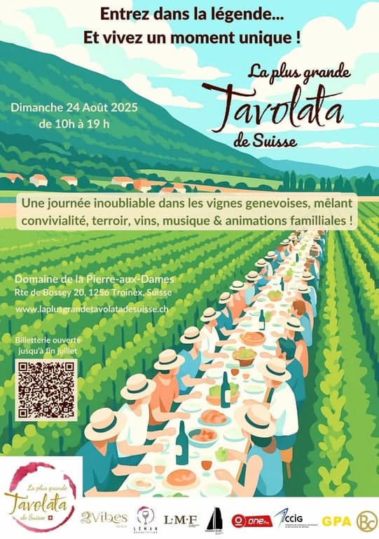 Participez à la plus grande Tavolata de Suisse au cœur des vignes genevoises.