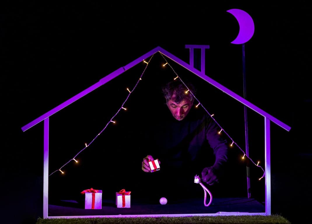 Idée originale et scénographie : Christophe Roche / Mise en scène : Christophe Roche et Laurent Bastide / Interprétation : Christophe Roche ou Laurent Bastide en alternance / Musiques : Vincent Gaffet, Christophe Roche, Patrick Sapin / Lumières : Ludovic Charrasse / Marionnettes et accessoires : Judith Dubois / Administration : Natacha Perche / Spectacle produit par La Clinquaille, coproduit par TEC (38). Avec le soutien de l’Espace des Halles – La Tour du Pin (38), Centre culturel Le Sou – La Talaudière (42), Salle des Rancy – Lyon (69), Espace culturel Eole – Craponne (69), Scène nationale de Bourg-en-Bresse (01), Le Coléo – Pontcharra (38), Théâtre François Ponsard – Vienne (38), Le Briscope – Brignais (69). La Clinquaille est subventionnée par la Région Auvergne-Rhône-Alpes et le Département de l’Isère. Elle est membre adhérent actif de doMino – Plateforme Jeune Public Auvergne-Rhône-Alpes et participe à son fonds de soutien. Elle est membre de la friche artistique Lamartine à Lyon. Photos © Laurent Vella