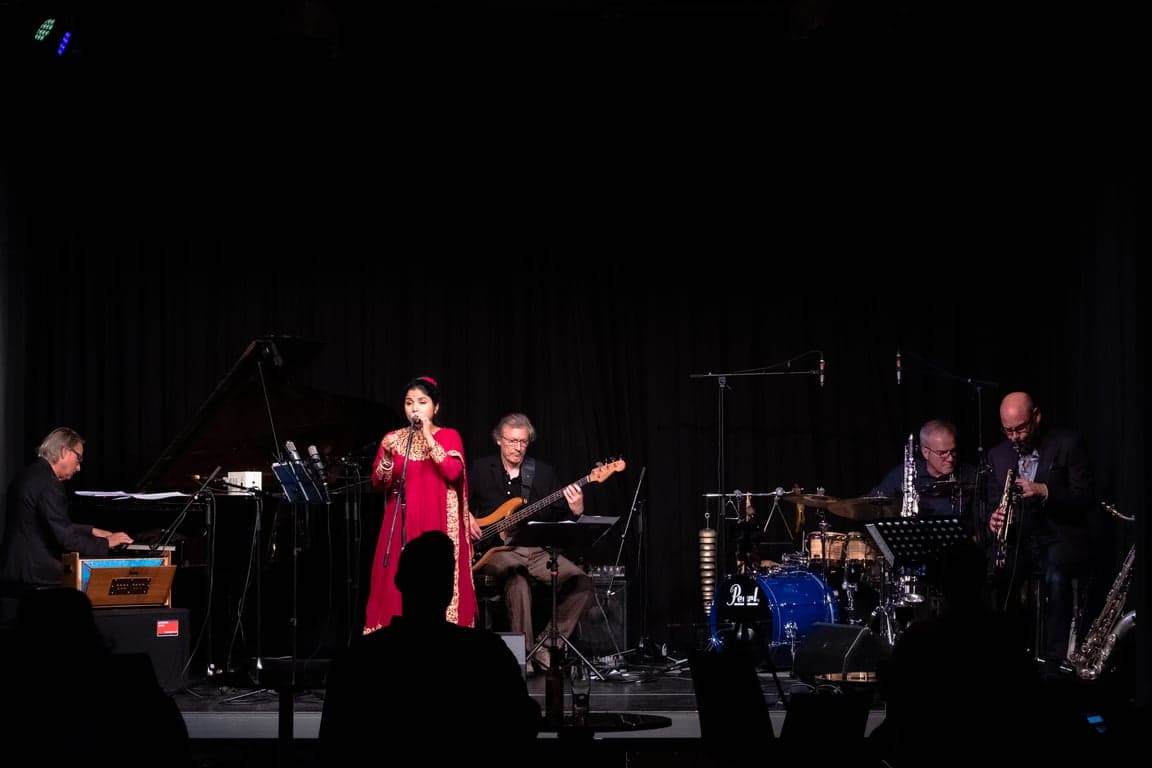 Nandighosha, c’est un groupe de jazz épicé, riche en couleurs et en saveurs des musiques du monde. Basé en Suisse, il a été fondé par Bijayashree Samal, chanteuse classique hindoustanie et auteure-compositrice.