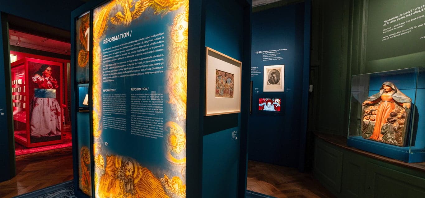 Un parcours chronologique et thématique qui présente les débuts de la Réformation, les guerres de Religion en France, la thématique de l’image aux premiers temps de la Réforme, les relations entre Genève et Jean Calvin puis l’expansion du protestantisme entre les 17e et 21e siècles.
