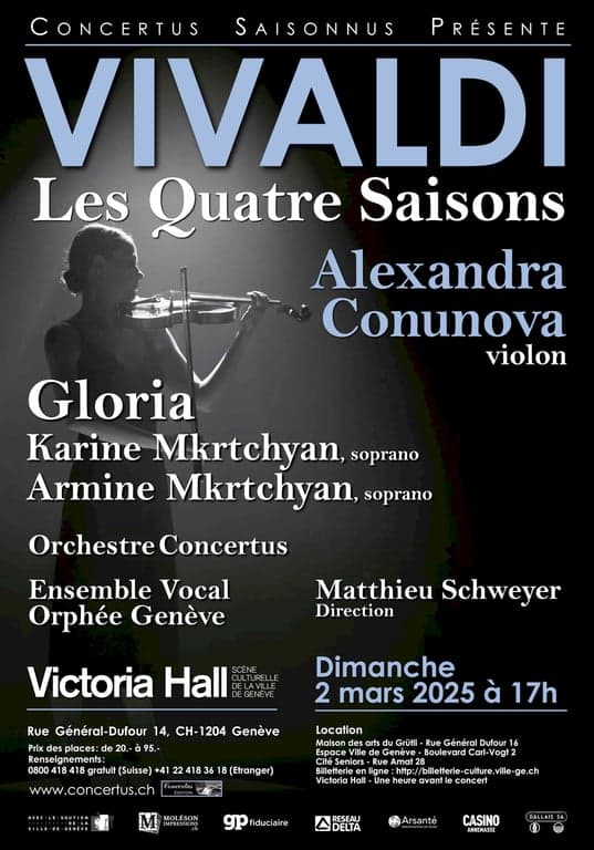Vivaldi – Les Quatre Saisons: Alexandra Conunova, violon, et Gloria; Orchestre Concertus; Ensemble Vocal Orphée Genève; Matthieu Schweyer, direction | Calendrier genevois